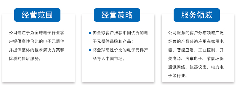 公司專注于為全球電子行業(yè)客戶提供高性價(jià)比的電子元器件,并提供整體的技術(shù)解決方案和優(yōu)質(zhì)的售后服務(wù)。